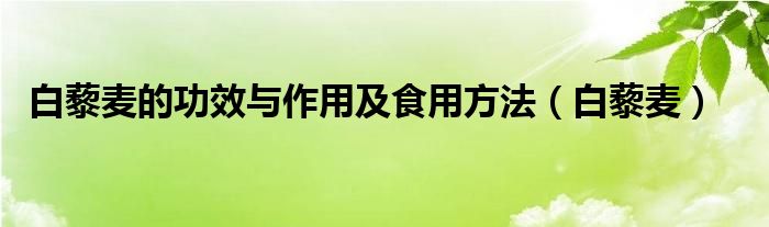 白藜麦的功效与作用及食用方法(白藜麦),快截止了,麻烦给个答案吧!