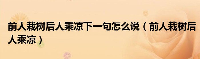 1、前人栽树,后人乘凉比喻前人为后人造福。