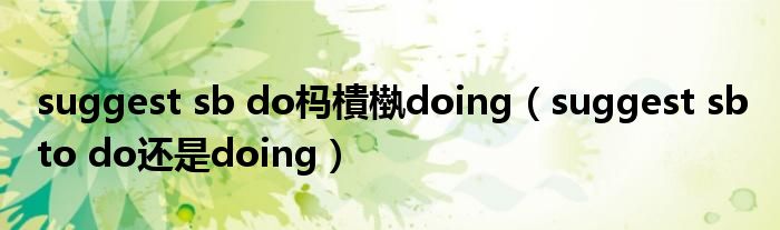 您好,今天帅帅来为大家解答以上的问题。suggest sb do杩樻槸doing,suggest sb to do还是doing相信很多小伙伴还不知道,现在让我们一起来看看吧!
