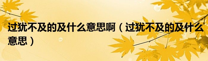 2、读音:[ guò yóu bù jí 出处:《论语·先进》:“子曰:‘过犹不及。