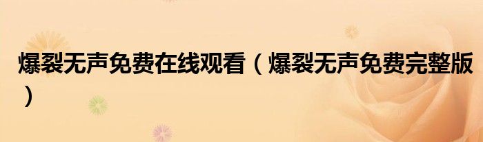 您好,今天帅帅来为大家解答以上的问题。爆裂无声免费在线观看,爆裂无声免费完整版相信很多小伙伴还不知道,现在让我们一起来看看吧!