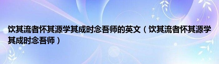 饮其流者怀其源学其成时念吾师的英文(饮其流者怀其源学其成时念吾师),急!求解答,求不敷衍我!