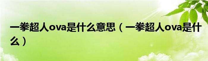 您好,今天帅帅来为大家解答以上的问题。一拳超人ova是什么意思,一拳超人ova是什么相信很多小伙伴还不知道,现在让我们一起来看看吧!