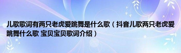 您好,今天帅帅来为大家解答以上的问题。儿歌歌词有两只老虎爱跳舞是什么歌,抖音儿歌两只老虎爱跳舞什么歌 宝贝宝贝歌词介绍相信很多小伙伴还不知道,现在让我们一起来看看吧!