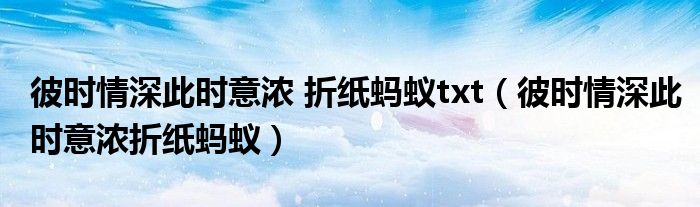 彼时情深此时意浓 折纸蚂蚁txt(彼时情深此时意浓折纸蚂蚁)急求答案,帮忙回答下
