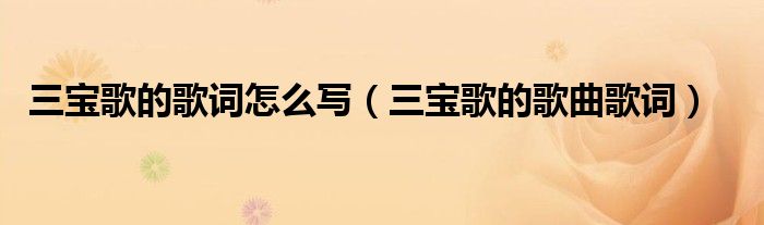 您好,今天帅帅来为大家解答以上的问题。三宝歌的歌词怎么写,三宝歌的歌曲歌词相信很多小伙伴还不知道,现在让我们一起来看看吧!