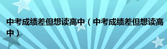 您好,今天帅帅来为大家解答以上的问题。中考成绩差但想读高中,中考成绩差但想读高中相信很多小伙伴还不知道,现在让我们一起来看看吧!