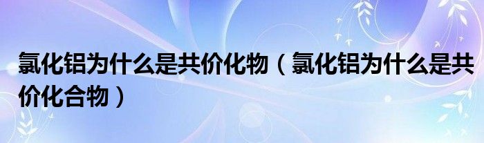 您好,今天帅帅来为大家解答以上的问题。氯化铝为什么是共价化物,氯化铝为什么是共价化合物相信很多小伙伴还不知道,现在让我们一起来看看吧!