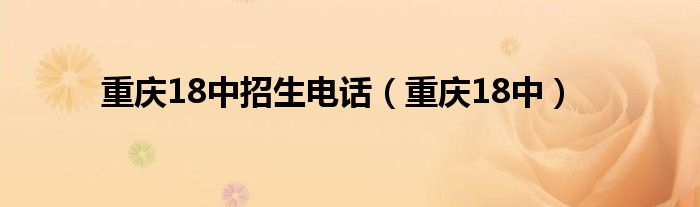 您好,今天帅帅来为大家解答以上的问题。重庆18中招生电话,重庆18中相信很多小伙伴还不知道,现在让我们一起来看看吧!