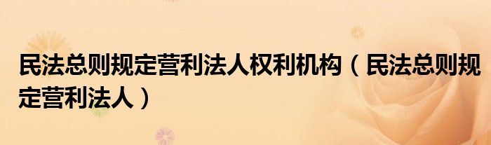 您好,今天帅帅来为大家解答以上的问题。民法总则规定营利法人权利机构,民法总则规定营利法人相信很多小伙伴还不知道,现在让我们一起来看看吧!