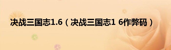 您好,今天帅帅来为大家解答以上的问题。决战三国志1.6,决战三国志1 6作弊码相信很多小伙伴还不知道,现在让我们一起来看看吧!
