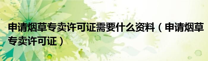 您好,今天帅帅来为大家解答以上的问题。申请烟草专卖许可证需要什么资料,申请烟草专卖许可证相信很多小伙伴还不知道,现在让我们一起来看看吧!