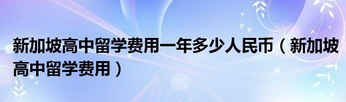 您好,今天帅帅来为大家解答以上的问题。新加坡高中留学费用一年多少人民币,新加坡高中留学费用相信很多小伙伴还不知道,现在让我们一起来看看吧!