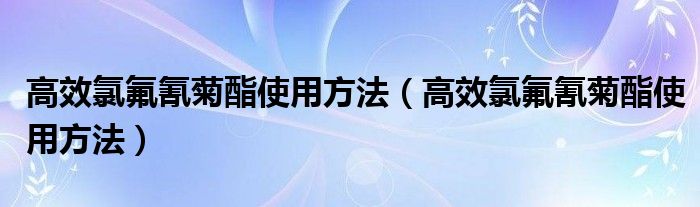 您好,今天帅帅来为大家解答以上的问题。高效氯氟氰菊酯使用方法,高效氯氟氰菊酯使用方法相信很多小伙伴还不知道,现在让我们一起来看看吧!