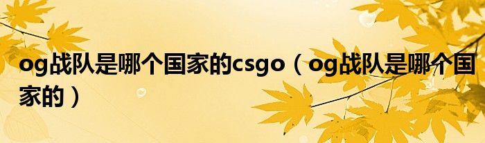 您好,今天帅帅来为大家解答以上的问题。og战队是哪个国家的csgo,og战队是哪个国家的相信很多小伙伴还不知道,现在让我们一起来看看吧!