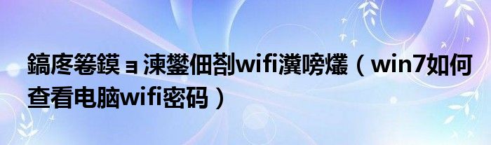 鎬庝箞鏌ョ湅鐢佃剳wifi瀵嗙爜(win7如何查看电脑wifi密码),求快速帮忙,马上要交了!
