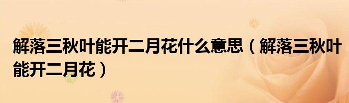 您好,今天帅帅来为大家解答以上的问题。解落三秋叶能开二月花什么意思,解落三秋叶能开二月花相信很多小伙伴还不知道,现在让我们一起来看看吧!