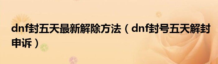 dnf封五天最新解除方法(dnf封号五天解封申诉),真的急死了,求好心人回复!