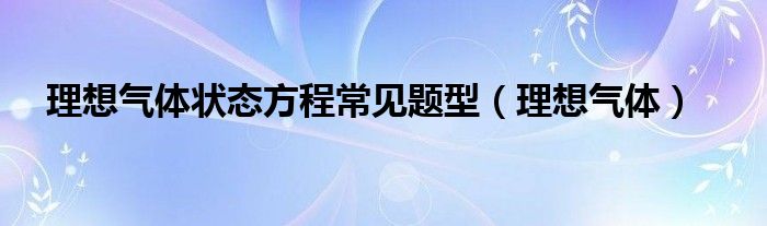 您好,今天帅帅来为大家解答以上的问题。理想气体状态方程常见题型,理想气体相信很多小伙伴还不知道,现在让我们一起来看看吧!