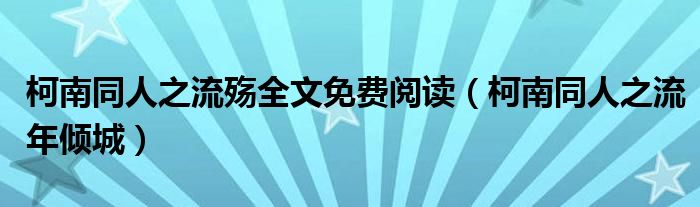 柯南同人之流殇全文免费阅读(柯南同人之流年倾城),真的急需帮助,求回复!