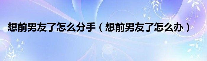 您好,今天帅帅来为大家解答以上的问题。想前男友了怎么分手,想前男友了怎么办相信很多小伙伴还不知道,现在让我们一起来看看吧!