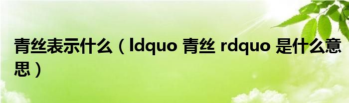 您好,今天帅帅来为大家解答以上的问题。青丝表示什么,ldquo 青丝 rdquo 是什么意思相信很多小伙伴还不知道,现在让我们一起来看看吧!