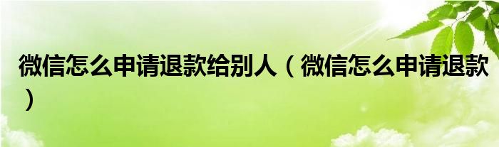 您好,今天帅帅来为大家解答以上的问题。微信怎么申请退款给别人,微信怎么申请退款相信很多小伙伴还不知道,现在让我们一起来看看吧!