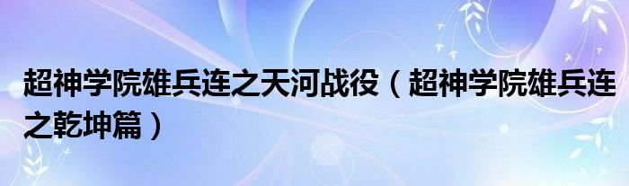 您好,今天帅帅来为大家解答以上的问题。超神学院雄兵连之天河战役,超神学院雄兵连之乾坤篇相信很多小伙伴还不知道,现在让我们一起来看看吧!