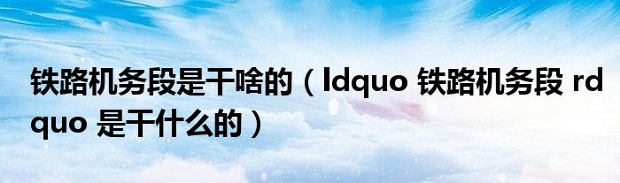 您好,今天帅帅来为大家解答以上的问题。铁路机务段是干啥的,ldquo 铁路机务段 rdquo 是干什么的相信很多小伙伴还不知道,现在让我们一起来看看吧!