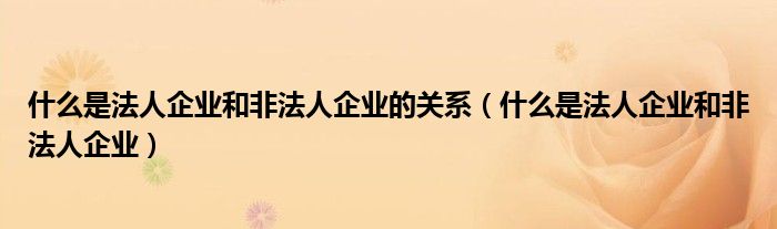 您好,今天帅帅来为大家解答以上的问题。什么是法人企业和非法人企业的关系,什么是法人企业和非法人企业相信很多小伙伴还不知道,现在让我们一起来看看吧!
