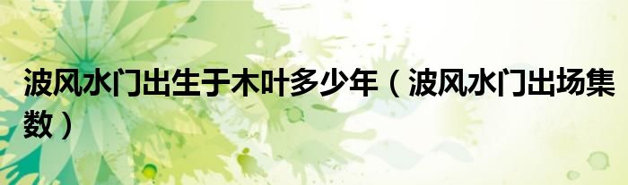 您好,今天帅帅来为大家解答以上的问题。波风水门出生于木叶多少年,波风水门出场集数相信很多小伙伴还不知道,现在让我们一起来看看吧!