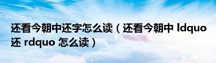 您好,今天帅帅来为大家解答以上的问题。还看今朝中还字怎么读,还看今朝中 ldquo 还 rdquo 怎么读相信很多小伙伴还不知道,现在让我们一起来看看吧!