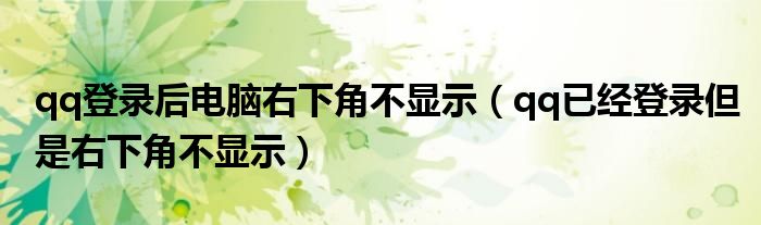 您好,今天帅帅来为大家解答以上的问题。qq登录后电脑右下角不显示,qq已经登录但是右下角不显示相信很多小伙伴还不知道,现在让我们一起来看看吧!