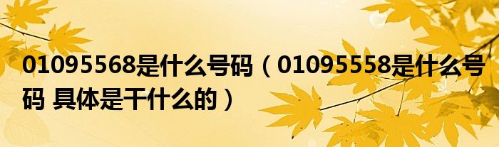 您好,今天帅帅来为大家解答以上的问题。01095568是什么号码,01095558是什么号码 具体是干什么的相信很多小伙伴还不知道,现在让我们一起来看看吧!