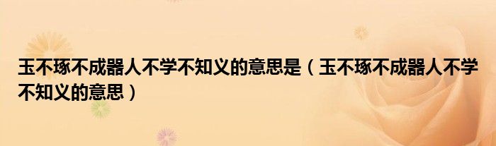 您好,今天帅帅来为大家解答以上的问题。玉不琢不成器人不学不知义的意思是,玉不琢不成器人不学不知义的意思相信很多小伙伴还不知道,现在让我们一起来看看吧!
