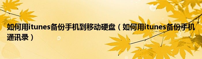 您好,今天帅帅来为大家解答以上的问题。如何用itunes备份手机到移动硬盘,如何用itunes备份手机通讯录相信很多小伙伴还不知道,现在让我们一起来看看吧!