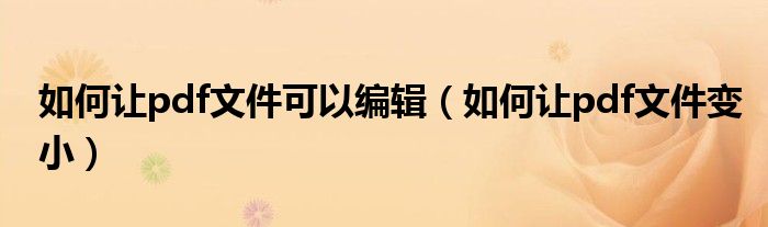 您好,今天帅帅来为大家解答以上的问题。如何让pdf文件可以编辑,如何让pdf文件变小相信很多小伙伴还不知道,现在让我们一起来看看吧!