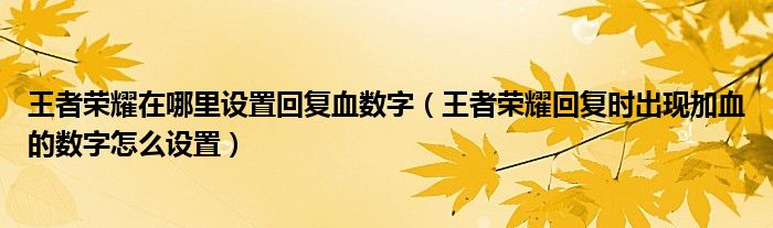 您好,今天帅帅来为大家解答以上的问题。王者荣耀在哪里设置回复血数字,王者荣耀回复时出现加血的数字怎么设置相信很多小伙伴还不知道,现在让我们一起来看看吧!