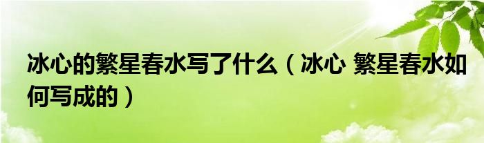 您好,今天帅帅来为大家解答以上的问题。冰心的繁星春水写了什么,冰心 繁星春水如何写成的相信很多小伙伴还不知道,现在让我们一起来看看吧!