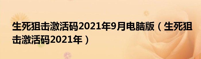 生死狙击激活码2021年9月电脑版(生死狙击激活码2021年)希望能解答下