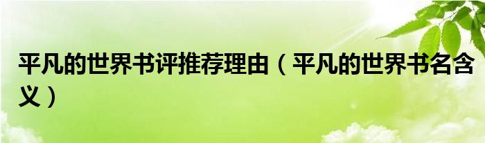您好,今天帅帅来为大家解答以上的问题。平凡的世界书评推荐理由,平凡的世界书名含义相信很多小伙伴还不知道,现在让我们一起来看看吧!