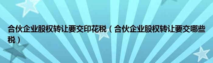 合伙企业股权转让要交印花税(合伙企业股权转让要交哪些税),跪求好心人,帮我度过难关!