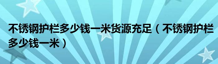 29、 以上就是小编分享的关于不锈钢护栏多少钱一米的相关内容,对于不锈钢护栏,有多种型号,也有多种不同的工艺,无论是耐受程度,硬度,耐腐蚀性,可能都不相同。