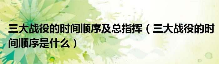 您好,今天帅帅来为大家解答以上的问题。三大战役的时间顺序及总指挥,三大战役的时间顺序是什么相信很多小伙伴还不知道,现在让我们一起来看看吧!