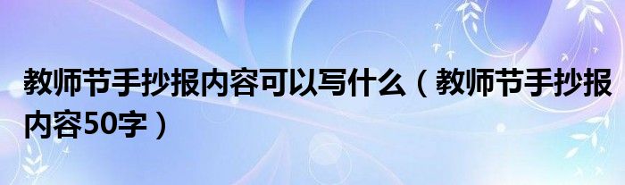 您好,今天帅帅来为大家解答以上的问题。教师节手抄报内容可以写什么,教师节手抄报内容50字相信很多小伙伴还不知道,现在让我们一起来看看吧!