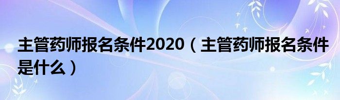 主管药师报名条件2020(主管药师报名条件是什么),麻烦给回复