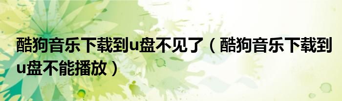 酷狗音乐下载到u盘不见了(酷狗音乐下载到u盘不能播放),有没有大佬愿意点拨一下?求帮忙!