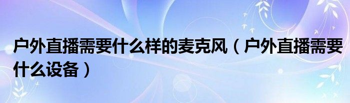 您好,今天帅帅来为大家解答以上的问题。户外直播需要什么样的麦克风,户外直播需要什么设备相信很多小伙伴还不知道,现在让我们一起来看看吧!