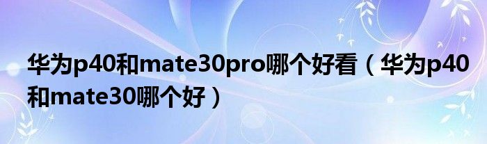 您好,今天帅帅来为大家解答以上的问题。华为p40和mate30pro哪个好看,华为p40和mate30哪个好相信很多小伙伴还不知道,现在让我们一起来看看吧!