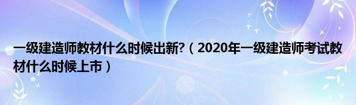 一级建造师教材什么时候出新?(2020年一级建造师考试教材什么时候上市),跪求万能的网友,帮我破局!